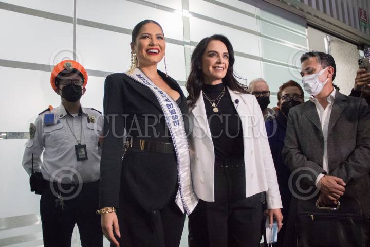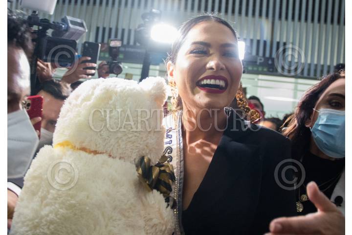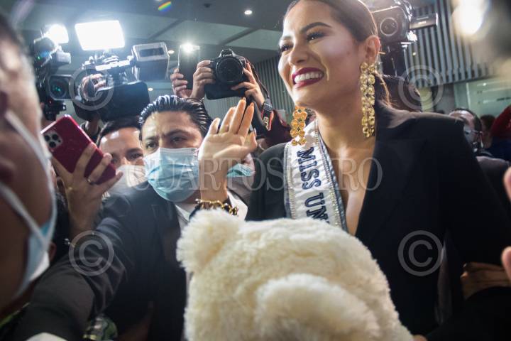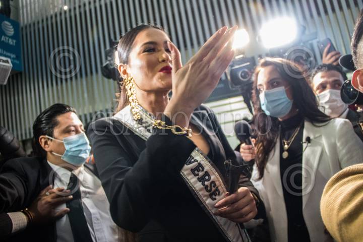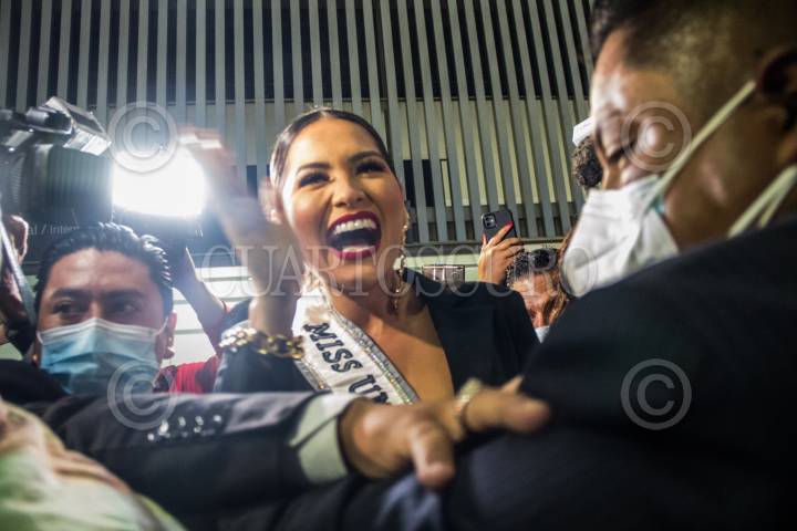 La Miss Universo, Andrea Meza, llego esta noche al aeropuerto Internacional de la Ciudad de México