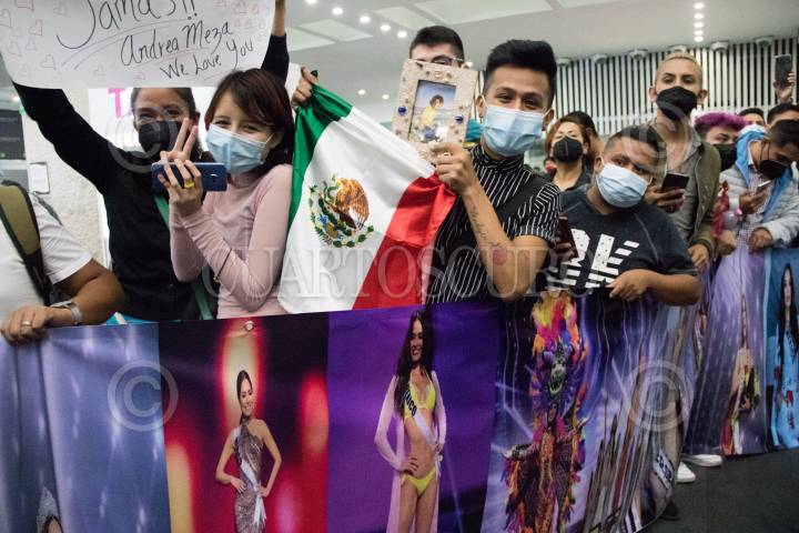 Fans en la bienvenida de la Miss Universo Andrea Meza