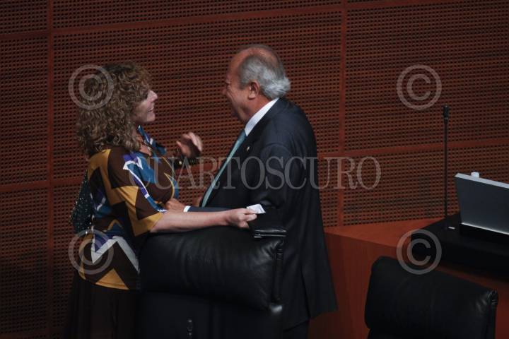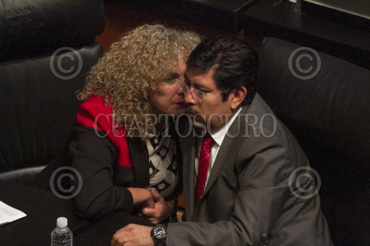 MÉXICO, DF., 13MARZO2014.- Los senadores Luz María Beristain, PRD, y Carlos Romero Deschamps, PRI, durante la sesión en la Cámara de Senadores. FOTO: MOISÉS PABLO /CUARTOSCURO.COM