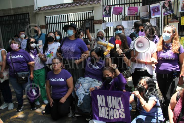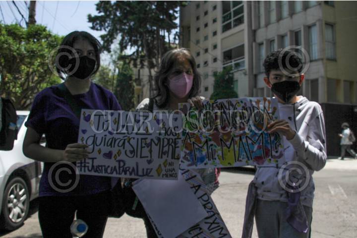 Mujeres y madres de la las colectivas exigieron justicia por Luz Raquel, quien era madre y cuidadora de su hijo pequeño diagnosticado con autismo, en la Representación del estado de Jalisco.