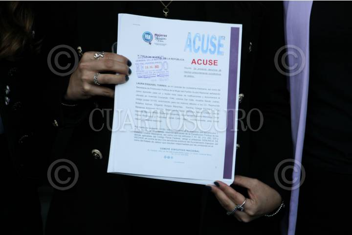 Laura Esquivel Torres, secretaria de Promoción Política de la Mujer del PAN; Diana González Martin, presidenta del PAN Jalisco, y las legisladoras Paulina Rubio y Mariana González del Campo presentaron una una denuncia ante la FGR en contra de las y los servidores públicos de Jalisco que resulten responsables por las graves omisiones en los mecanismos de protección de mujeres, que derivaron en el feminicidio de Luz Raquel Padilla Gutiérrez