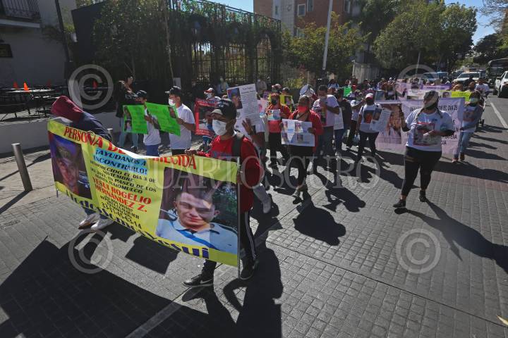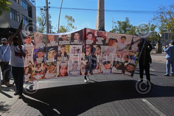 Personas del colectivo Luz de Esperanza, marchan por las principales avenidas de la ciudad con las imágenes de sus familiares desaparecidos.