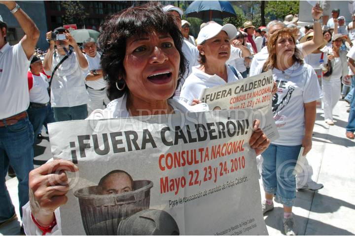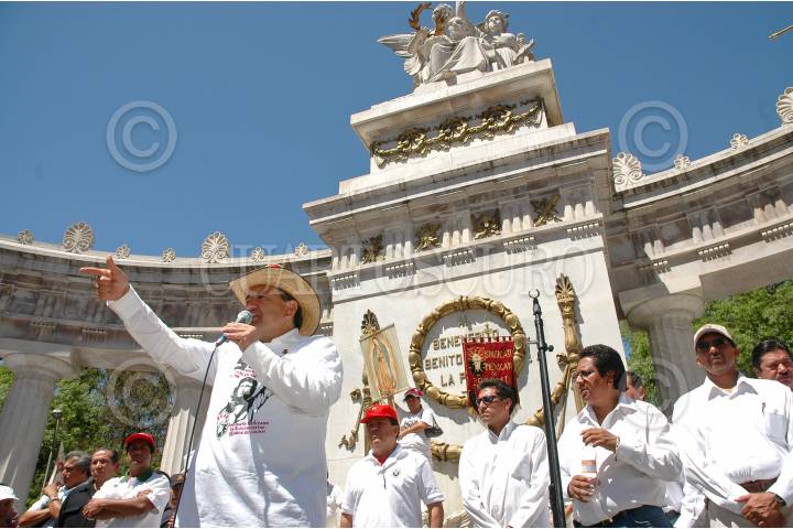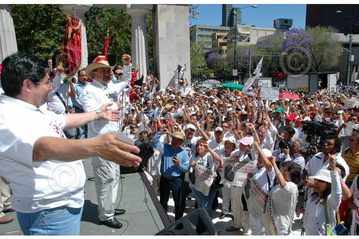 MÉXICO, D.F., 20MARZO2010.- Cientos de simpatizantes y ex trabajadores de la extinta compañía de Luz y Fuerza del Centro y del Sindicato Mexicano de Electricistas (SME) liderados por Martin Esparza realizaron una Marcha por la Paz y el Trabajo del Ángel de la Independencia al Hemiciclo a Juarez. FOTO: RODOLFO ANGULO/CUARTOSCURO.COM