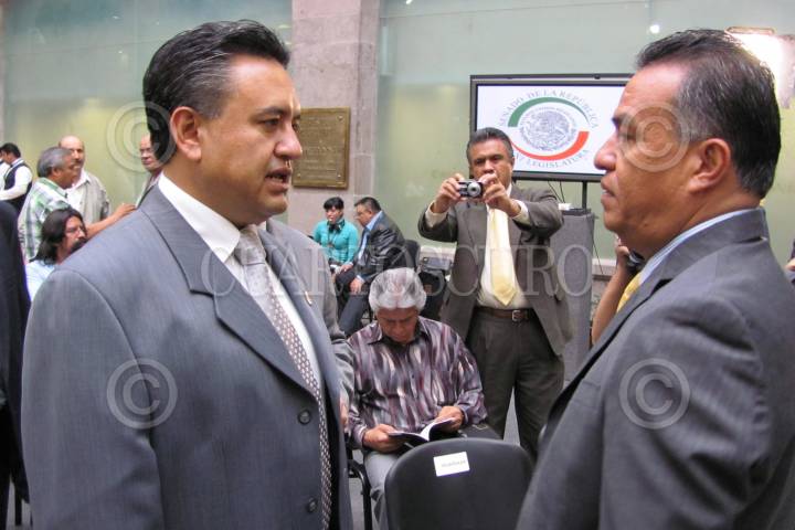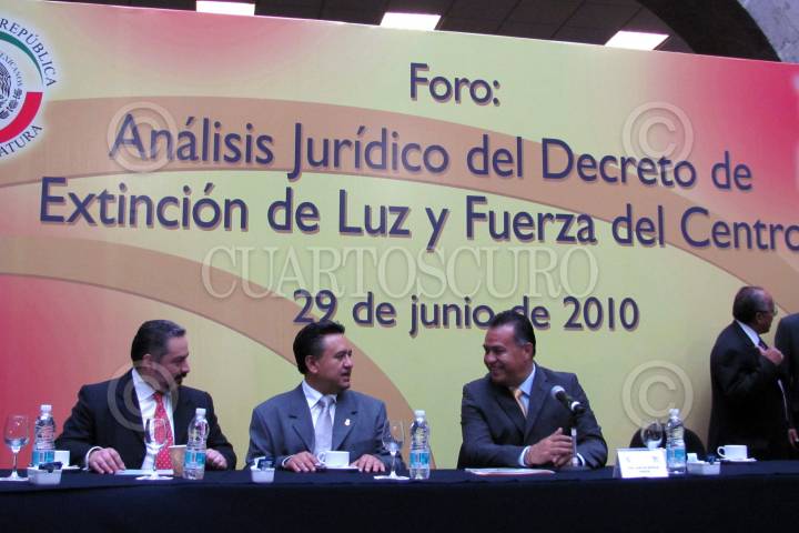 MÉXICO, D.F., 29JUNIO2010.- Martín Esparza, líder del extinto Sindicato Méxicano de Electricistas, y el senador Carlos Sotelo García, al inaugurar el foro de Análisis Jurídico del Decreto de Extinción de Luz y Fuerza del Centro. FOTO: CUARTOSCURO.COM