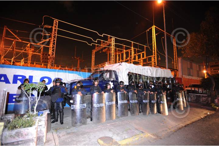 MÉXICO, D.F., 11OCTUBRE2010.- En la imagen tomada hace un año, elementos de la Policías Federales tomaron las instalaciones de la Luz y Fuerza del Centro ubicadas en el cruce de Marina Nacional y Circuito Interior. FOTO: ARCHIVO/LUIS CARBAYO/CUARTOSCURO.COM