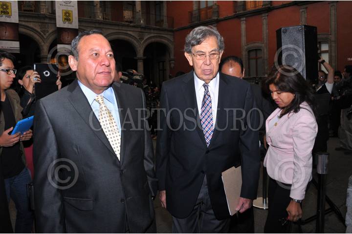 MÉXICO, D.F., 22OCTUBRE2013.- Jesús Zambrano Grijalva, presidente nacional del Partido de la Revolución Democrática, y Cuauhtémoc Cárdenas Solórzano asistieron al Foro “A Cuatros Años de la Extinción de Luz y Fuerza del Centro, Retos y Perspectivas de la Electricidad en la Ciudad de México. Hacia un Derecho Humano.” FOTO: CUARTOSCURO.COM