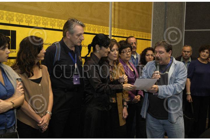 GUADALAJARA, JALISCO, 01DICIEMBRE2007.- Escritores e intelectuales realizaron un acto en apoyo a la periodista Lydia Cacho, en el marco de la Feria Internacional del Libro de Guadalajara. FOTO: CUARTOSCURO.COM