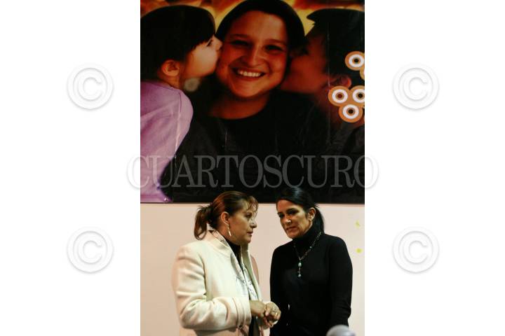 MÉXICO D.F., 26SEPTIEMBRE2008.- Martha Lucia Micher, directora general del Instituto de las Mujeres del D.F. conversa con la periodista Lydia Cacho durante un evento de entrega de 500 tarjetas a mujeres derechohabientes del Seguro contra la Violencia Familiar. FOTO: RODOLFO ANGULO/CUARTOSCURO.COM