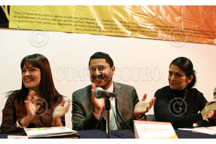 MÉXICO D.F., 26SEPTIEMBRE2008.- La directora de Igualdad y Diversidad Social, Martha Patricia Patiño Fierro; el secretario de Desarrollo Social, Martí Batres y la periodista Lydia Cacho durante un evento de entrega de 500 tarjetas a mujeres derechohabientes del Seguro contra la Violencia Familiar. FOTO: RODOLFO ANGULO/CUARTOSCURO.COM