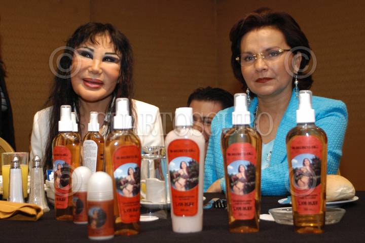 MEXICO D.F. 26JULIO2005.- La actriz Lyn May y Patricia Chapoy, conductora del programa ¨Ventaneando¨ durante la presentación de la linea de productos de belleza de la ex vedette. FOTO: Germán Romero/CUARTOSCURO.COM