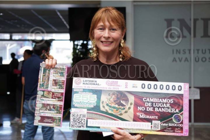 MONTERREY, NUEVO LEÓN, 19AGOSTO2025.- Presentación de del sorteo de Lotería Nacional dedicado a las y los paisanos migrantes, “México con M de Migrante” el cual se realizará el próximo 15 de septiembre, a las 16:00 horas. FOTO: LOTERÍA ANCIONAL/CUARTOSCURO.COM