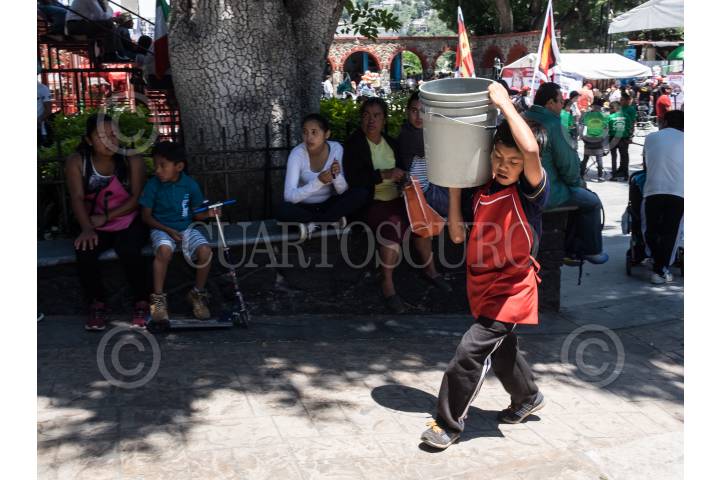 CIUDAD DE MÉXICO, 27MAYO2018.- Un niño carga una cubeta con agua durante su jornada laboral en el Pueblo San Pedro Atocpan en la delegación de Milpa Alta. FOTO: ANDREA MURCIA /CUARTOSCURO.COM