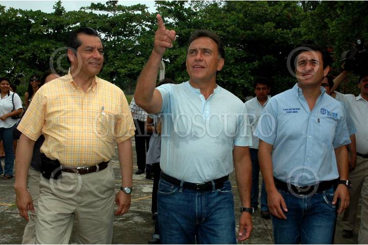 BOCA DEL RÍO, VERACRUZ. 19ABRIL2009.- El director general del ISSSTE, Miguel Angel Yunes Linares, realizo la presentación del proyecto de remodelación del centro deportivo de dicho instituto, mismo que se ubica en la congregación de San José Novillero, perteneciente al municipio de Boca del Río, cuyo alcalde es su hijo, Miguel Ángel Yunes Márquez. FOTO: JOSE CANDELARIO/CUARTOSCURO.COM