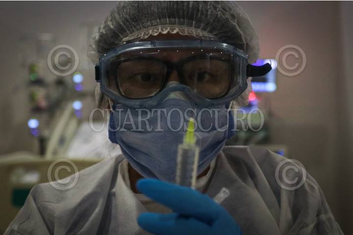 Una médica preparó una inyección en el Pabellón de Terapia Intensiva en el Hospital de Expansión Autódromo Hermanos Rodríguez
