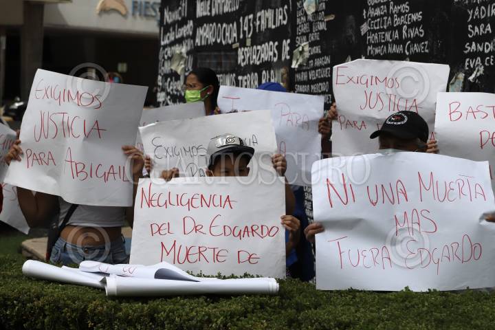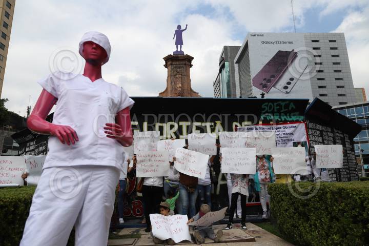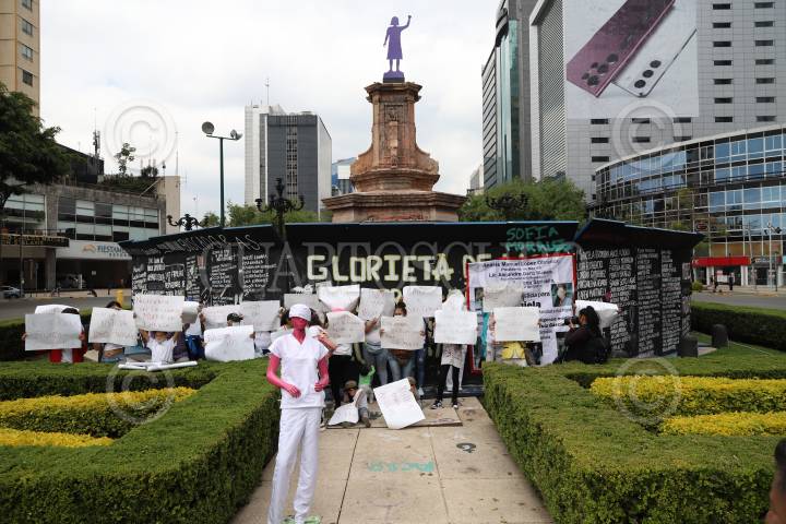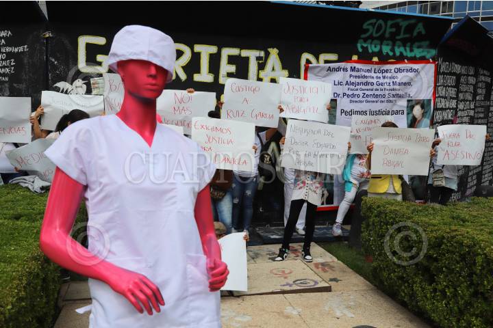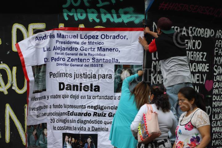 Protesta pacífica de los familiares de la enfermera Daniela Abigail de la Cruz Suárez que presuntamente murió por una negligencia médica cometida en el Hospital 1ero de Octubre en la glorieta a la Joven de Amajac.
