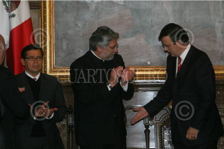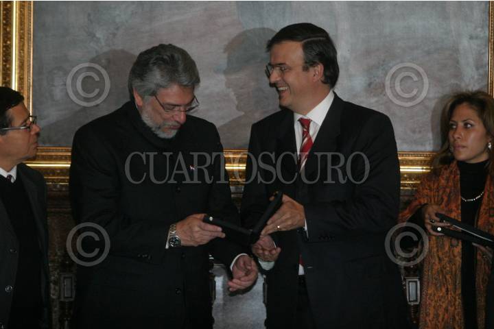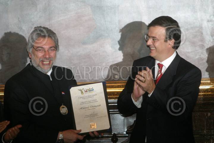 MÉXICO, D.F., 03NOVIEMBRE2008.- Marcelo Ebrard Jefe de Gobierno del Distrito Federal entrego las llaves de la ciudad, medalla y pergamino de declaratoria de huésped distinguido al presidente de Paraguay, Fernando Lugo Méndez. FOTO: SÁSHENKA GUTIÉRREZ/CUARTOSCURO.COM