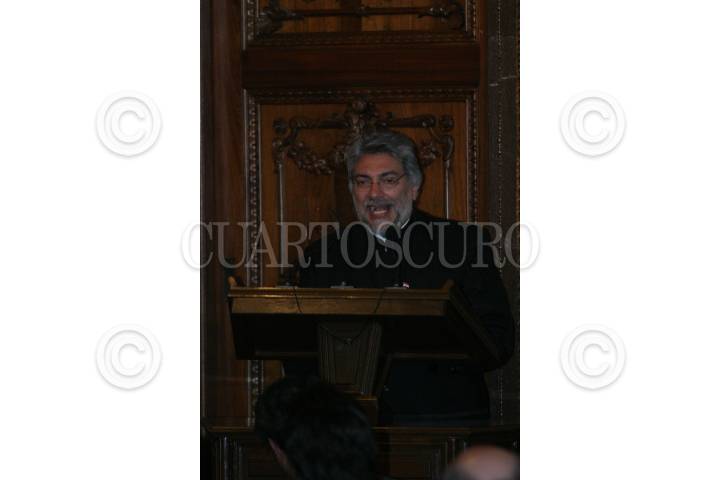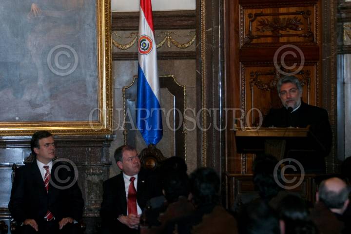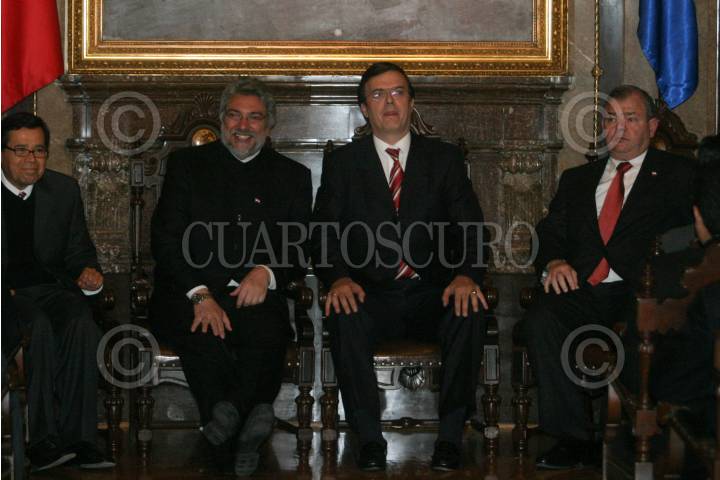 MÉXICO, D.F., 03NOVIEMBRE2008.- Fernando Lugo Méndez presidente de Paraguay durante la entrega de llaves de la ciudad, medalla y pergamino de declaratoria de huésped distinguido de manos de Marcelo Ebrar jefe de Gobierno del Distrito Federal. FOTO: SÁSHENKA GUTIÉRREZ/CUARTOSCURO.COM