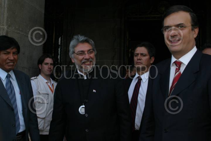 MÉXICO, D.F., 03NOVIEMBRE2008.- Fernando Lugo Méndez presidente de Paraguay a su salida del edificio del GDF donde recibió las llaves de ciudad, medalla y pergamino de declaratoria de huésped distinguido de manos de Marcelo Ebrar jefe de Gobierno del Distrito Federal. FOTO: SÁSHENKA GUTIÉRREZ/CUARTOSCURO.COM