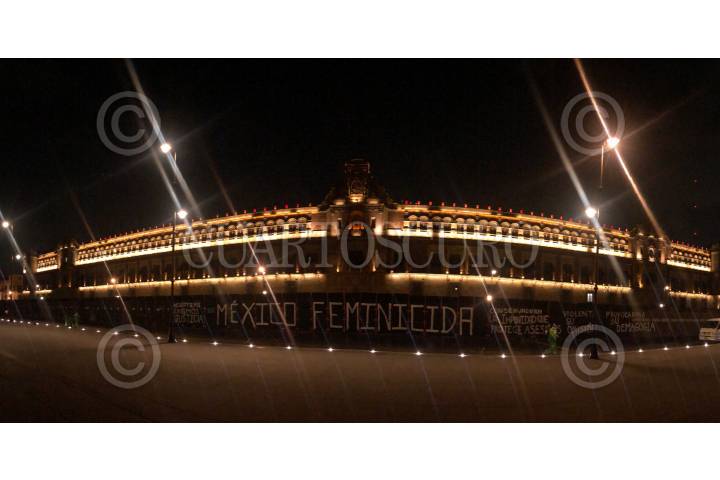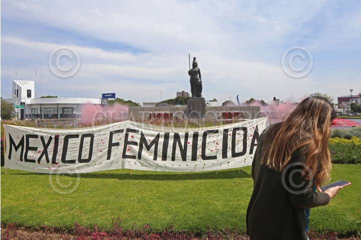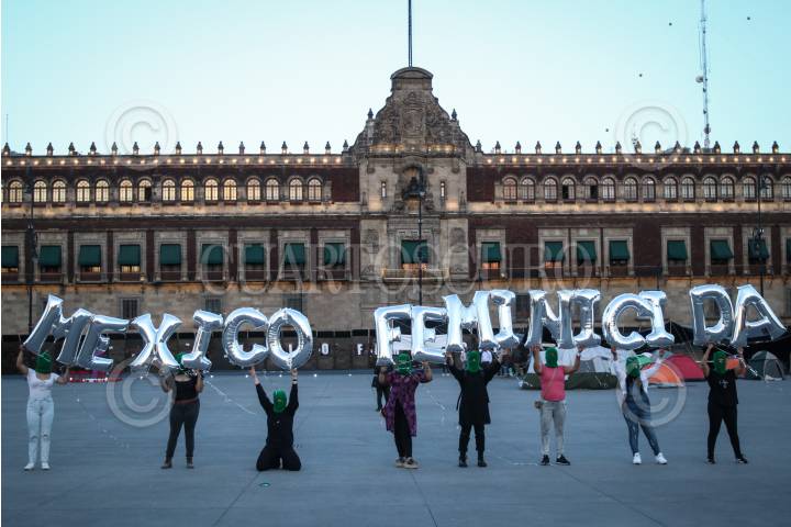 Colectivas feministas y mujeres que visitaban el Zócalo se unieron para formar con letras de globo “México Feminicida” para después dejarlas volar en el mismo. Exigen que pare la violencia de género en México.
