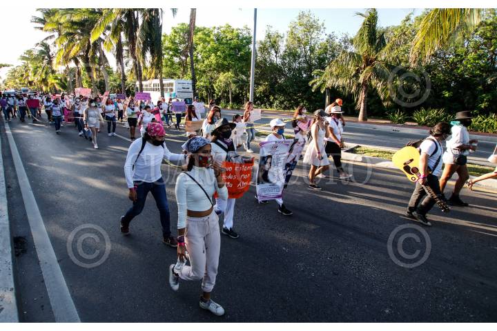 Mujeres marcharon para exigir justicia por los feminicidios que se han perpetrado en el estado de Quintana Roo, la mayoría de ellos las autoridades no han dado con los responsables.