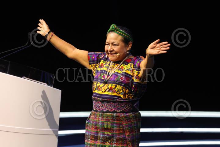 CIUDAD DE MÉXICO, 05SEPTIEMBRE2025. Rigoberta Menchú durante el evento de Fundación Telmex Telcel “México Siglo XXI #MSXXI”, el encuentro anual de Fundación con sus becarios, en el Auditorio Nacional. FOTO: EDGAR NEGRETE LIRA/CUARTOSCURO.COM