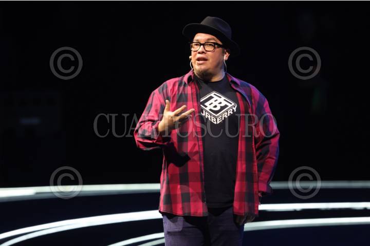 CIUDAD DE MÉXICO, 05SEPTIEMBRE2025. El comediante Franco Escamilla durante el evento de Fundación Telmex Telcel “México Siglo XXI #MSXXI”, el encuentro anual de Fundación con sus becarios, en el Auditorio Nacional. FOTO: EDGAR NEGRETE LIRA/CUARTOSCURO.COM