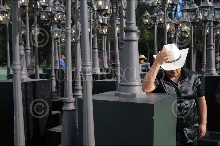 CIUDAD DE MÉXICO, 10SEPTIMBRE2023. - Un hombre con sombrero de toma una fotografía dentro de una de las instalaciones del Festival ARRE HSBC 2023. FOTO: DANIEL AUGUSTO /CUARTOSCURO.COM