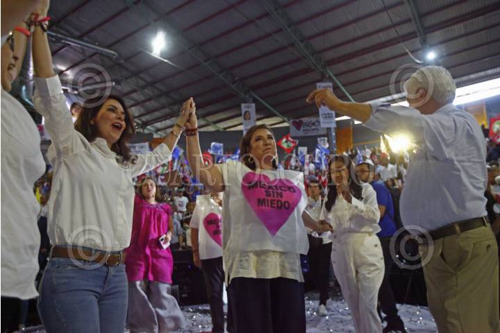 GUADALAJARA, JALISCO, 02MARZO2024.- La candidata de la coalición Fuerza y Corazón por México, Xóchitl Gálvez, encabezo un mitin como parte del arranque de su campaña a la presidencia de la nación denominado “Por un México sin Miedo”, que se llevo a cabo en el Palenque Fiestas de Octubre y a donde se dieron cita cientos de personas. FOTO: FERNANDO CARRANZA GARCIA / CUARTOSCURO.COM