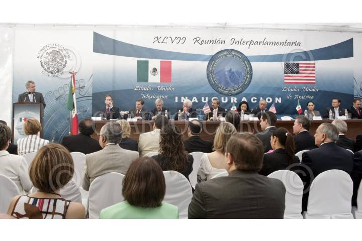 MONTERREY, NUEVO LEÓN, 07JUNIO2008.- Legisladores que participan en la XLVII Reunión Interparlamentaria México-Estados Unidos, que presiden la diputada Ruth Zavaleta Salgado, el senador Santiago Creel Miranda, el senador Christopher Dodd y el representante Ed Pastor. FOTO: CUARTOSCURO.COM