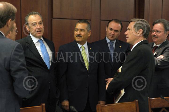 MONTERREY, NUEVO LEÓN, 07JUNIO2008.- José Natividad, gobernador del estado de Nuevo León durante la XLVII Reunión Interparlamentaria México-Estados Unidos, que presiden la diputada Ruth Zavaleta Salgado, el senador Santiago Creel Miranda, el senador Christopher Dodd y el representante Ed Pastor. FOTO: CUARTOSCURO.COM