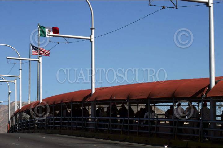 CIUDAD JUAREZ, CHIHUAHUA 02MARZO2005.- Sobre el puente internacional Paso del Norte, dentro del tunel, se ve a peatones que caminan hacia territorio estadounidense. Foto: Guadalupe Perez/CUARTOSCURO.COM