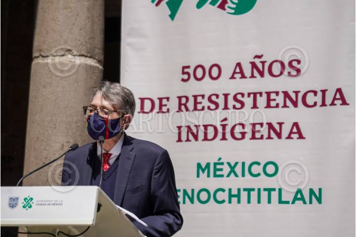 Alfonso Suárez del Real durante el anunci0 del programa 500 años de Indígena México-Tenochtitlan