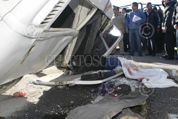 TEXCOCO EDO. DE MEX.-Cruz Piña López de 38 años, pierde la vida al momento de voltearse la camioneta de transporte público en la cual viajava, después de ser impactada por un trailer esto en el Km.25 de la carretera México-Texcoco. FOTO: SAÚL LÓPEZ/CUARTOSCURO.COM