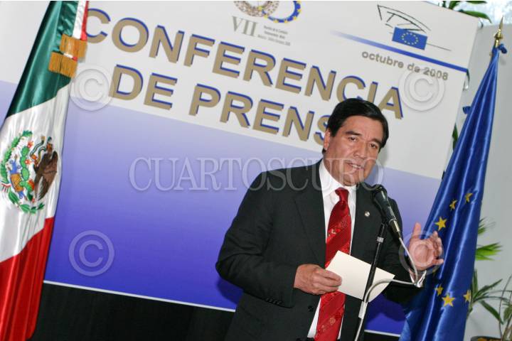 MÉXICO, D.F., 29OCTUBRE2008.- En Conferencia de prensa el senador José Guadarrama Márquez, informó sobre el desarrollo de los acuerdos logrados en la VII Reunión de la Comisión Parlamentaria Mixta México-Unión Europea que se realizo en el Centro Cultural Tlatelolco donde antes fue la sede de la cancilleria. FOTO: RODOLFO ANGULO/CUARTOSCURO.COM