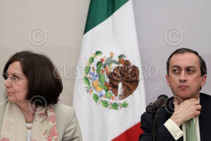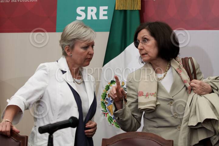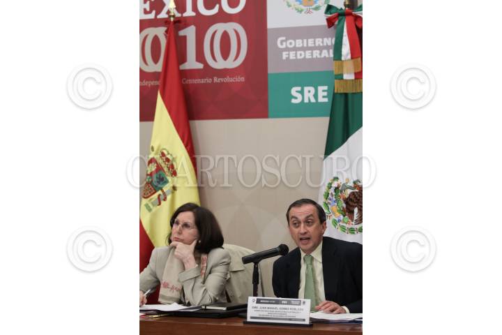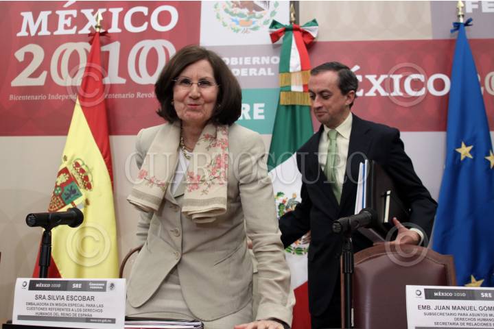MÉXICO, D.F., 12MAYO2010.- Silvia Escobar, embajadora en misión especial para las cuestiones referentes a los derechos humanos del Reino de España, y Juan Manuel Gómez Robledo, subsecretario para asuntos multilaterales y derechos humanos de la Secretaría de Relaciones Exteriores, ofrecieron una conferencia de prensa después de encabezar la 1a Reunión bilateral México-Unión Europea sobre derechos humanos, en instalaciones de la cancillería. FOTO: MOISÉS PABLO/CUARTOSCURO.COM