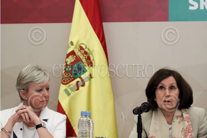 MÉXICO, D.F., 12MAYO2010.-Marie-Anne Coninsx, jefa delegacional europea en México y Silvia Escobar, embajadora en misión especial para las cuestiones referentes a los derechos humanos del Reino de España, ofrecieron una conferencia de prensa tras finalizar la 1a Reunión bilateral México-Unión Europea sobre derechos humanos, en instalaciones de la cancillería. FOTO: MOISÉS PABLO/CUARTOSCURO.COM