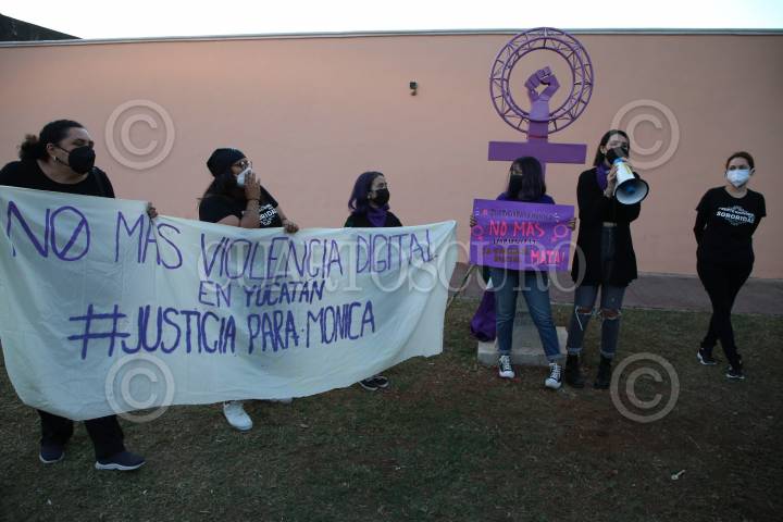 Un grupo de feministas se manifestaron en la Antimonumenta para exigir castigo a los responsables de difundir un video íntimo de Mónica, una chica de 16 años, víctima de violencia sexual digital.