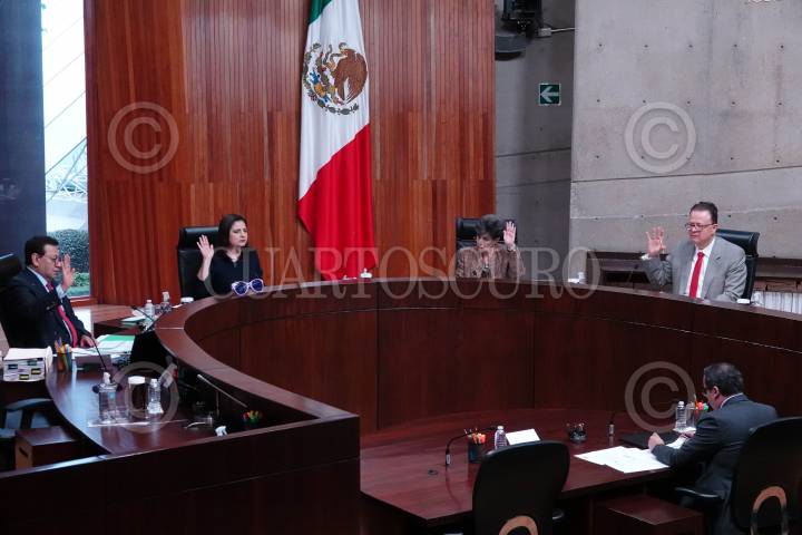 CIUDAD DE MÉXICO, 26JUNIO2024.- Sin la presencia del magistrado Reyes Rodríguez Mondragón fue realizada la sesión pública de la Sala Superior del Tribunal Electoral del Poder Judicial de la Federación (TEPJF) con la asistencia de: Los magistrados Felipe Alfredo Fuentes, Felipe de la Mata Pizaña y Janine M. Otálora, así como de la presidentaMónica Aralí Soto Fregoso. FOTO: GALO CAÑAS/CUARTOSCURO.COM