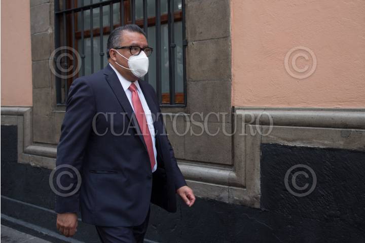 César Yañez, coordinador general de Gobierno y Política del Gobierno de la República, durante su llegada a la antigua sede del Senado Xicoténcatl.