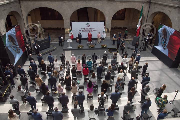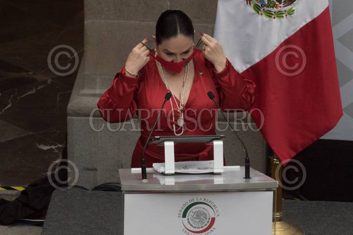 Mónica Fernández, presidenta de la Mesa Directiva de la Cámara de Senadores, ofreció su segundo informe de actividades legislativas en la antigua sede del Senado Xicoténcatl.