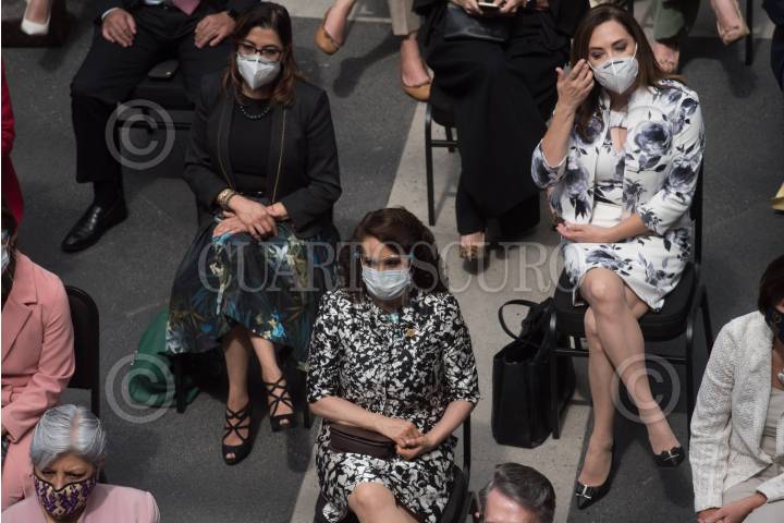 Laura Ángelica Rojas, presidenta de la Cámara de Diputados; Luis Cresencio Sandoval, secretario de la Defensa Nacional; Andrés Manuel López Obrador, presidente de México; Beatríz Gutiérrez Müller, invetigadora y primera dama, y Rafael Ojeda, secre