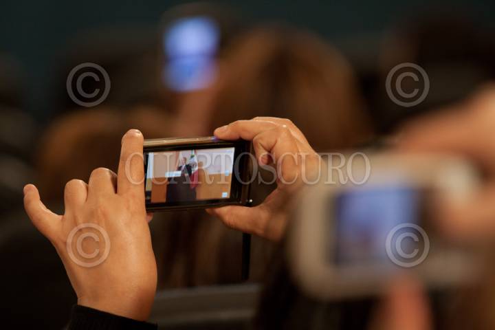 MÉXICO, D.F., 01NOVIEMBRE2011.- Asistentes a la ceremonia de inauguración el nuevo edificio de Oncología del Hospital General de México, captan el discurso del Presidente de México con sus dispositivos móviles. FOTO: MOISÉS PABLO/CUARTOSCURO.COM