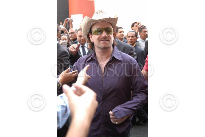 MEXICO D.F. 14 FEBRERO 2006.- Bono, vocalista y lider del grupo de rock irlandès U2 saliò unos momentos del hotel para saludar a los fans y presentarse con la prensa. Foto:Carlos Guzmàn/CUARTOSCURO.COM