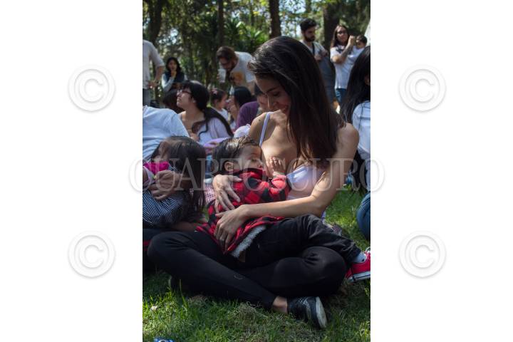 CIUDAD DE MÉXICO, 24NOVIEMBRE2019.- El pasado 19 de noviembre una mujer denunció que cuando se encontraba amamantando a su hija dentro de las salas de exhibición del Museo de Arte Moderno un policía le pidió que saliera por cuestiones del reglamento, que prohibe esta acción, hoy un grupo de mujeres en apoyo a esta denuncia se reunieron en las instalaciones del MAM para realizar una tetada colectiva y exigir la normalización de la lactancia materna en espacios públicos. FOTO: MAGDALENA MONTIEL / CUARTOSCURO.COM