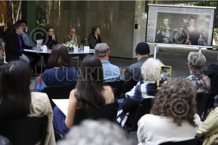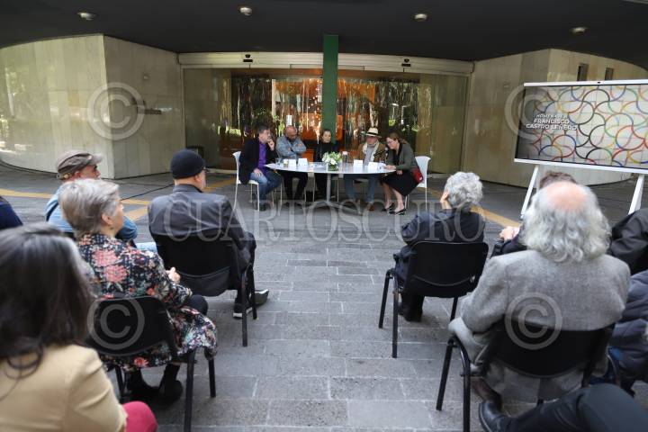 Sergio Ricaño; José Miguel González Casanova; Magali Lara y Natalia Pollak, Directora Museo de Arte Moderno durante el homenaje a Francisco Castro Leñero en el Museo de Arte Moderno de la Ciudad de México.