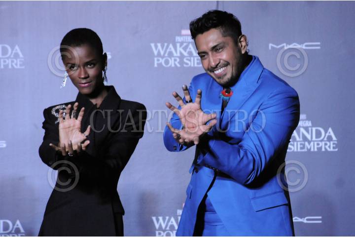 Letitia Wrigth y Tenoch Huerta, durante la fotografía oficial.
