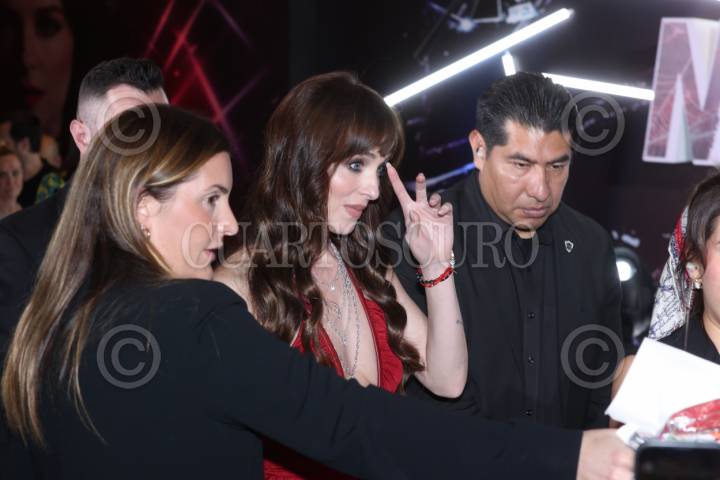 Mabel Cadena, actriz mexicana que participa en la película camina por la alfombra roja.