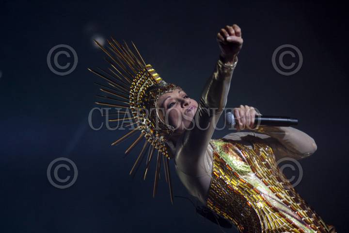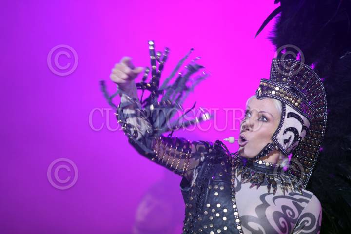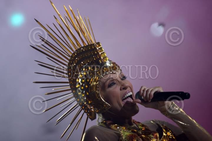 PAPANTLA, VERACRUZ, 18MARZO2010.- La cantautora mejor conocida como la reyna de la anarco cumbia durante su presentación ayer por la noche ante cientos de personas dentro de las actividades de Cumbre Tajín 2010 y que se realiza en el parque temático Takilhsukut. FOTO: SÁSHENKA GUTIÉRREZ/CUARTOSCURO.COM
