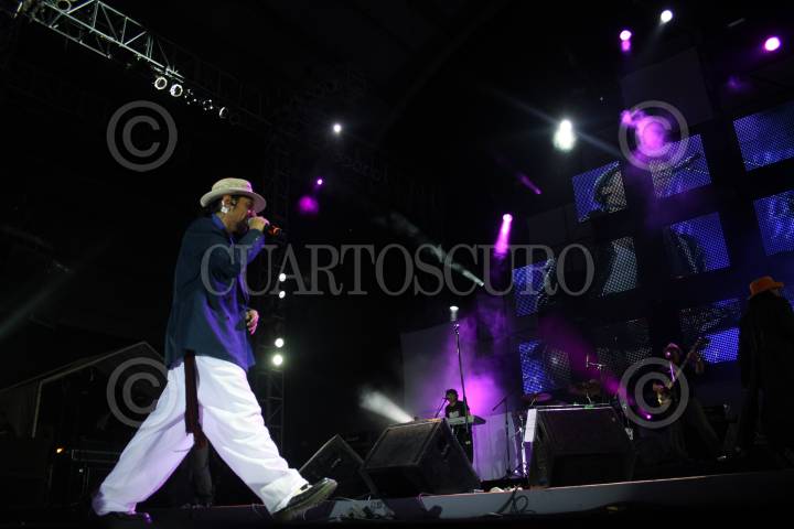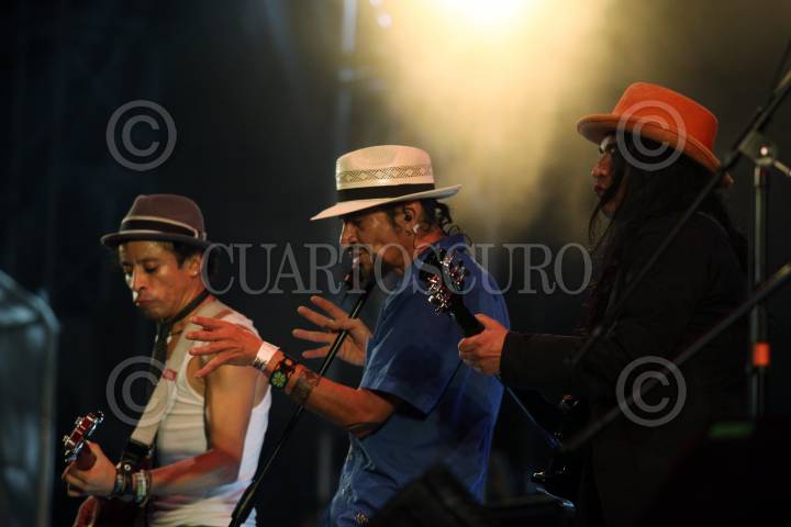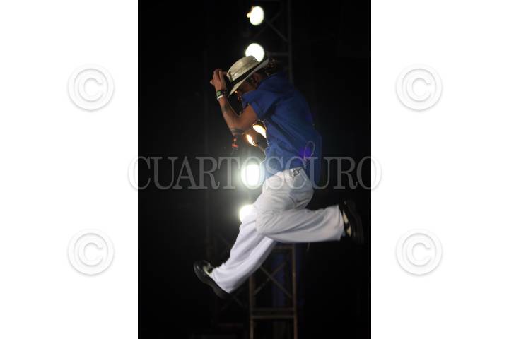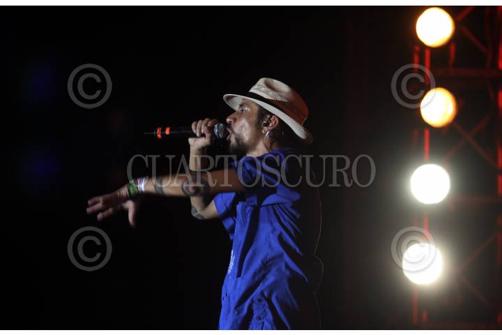PAPANTLA, VERACRUZ, 19 MARZO2010.- El grupo de rock La Maldita Vecindad, durante su presentación ayer por la noche ante cientos de personas dentro de las actividades de Cumbre Tajín 2010 y que se realiza en el parque temático Takilhsukut. FOTO: SÁSHENKA GUTIÉRREZ/CUARTOSCURO.COM