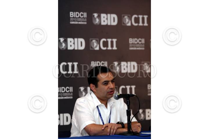 CANCÚN, QUINTANA ROO 23 MARZO2010.- Ernesto Cordero secretario de hacienda, durante la conferencia de prensa que ofreció al termino de la reunión anual de Gobernadores del Banco Interamericano de desarrollo. FOTO: AMARANTA PRIETO/CUARTOSCURO.COM